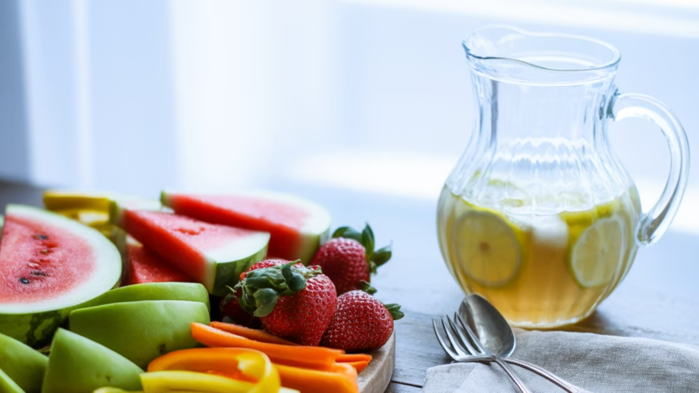 A5. 수박, 참외, 오이처럼 수분 함량이 높은 과일과 채소가 좋아요. 요거트나 수프 형태의 음식도 수분 섭취에 도움을 줘요.