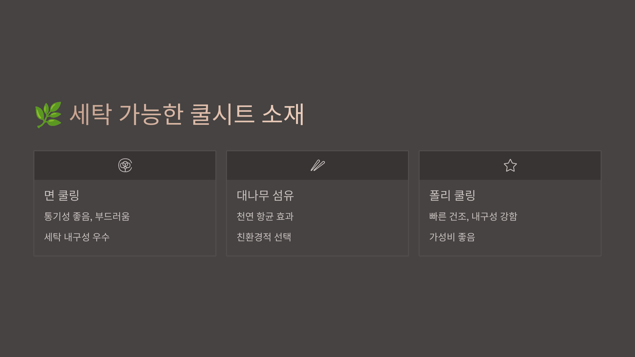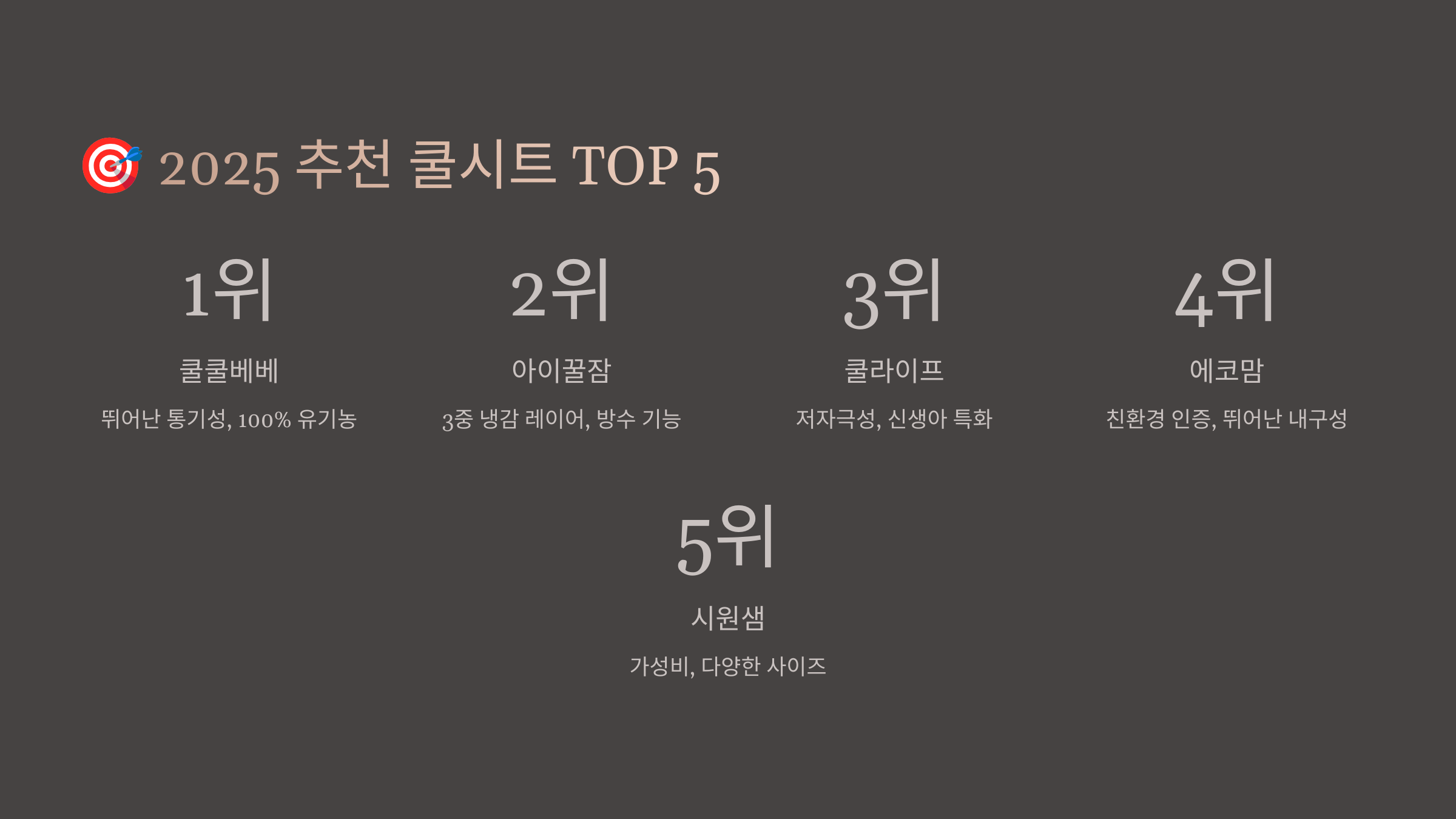 이제 어떤 쿨시트를 살지 조금은 감이 오셨나요? 다음 세션에서는 쿨시트 구매 전 꼭 확인해야 할 체크포인트와 놓치기 쉬운 팁까지 알려드릴게요!