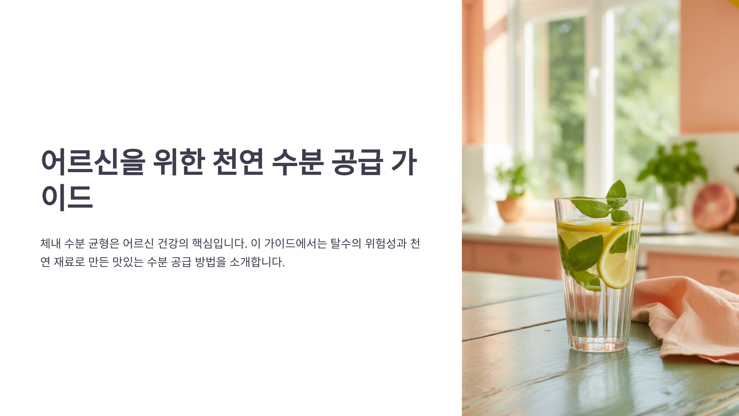 ๋ฐ๋ผ์ ๋จ์ํ ‘๋ชฉ์ด ๋ง๋ฅด๋ค’๋ ๋๋ ์ด์ ์, ์๋ถ ์ญ์ทจ๊ฐ ๊พธ์คํ ์ด๋ค์ ธ์ผ ํด์. ํ๋ฃจ ์ต์ 1.5~2๋ฆฌํฐ ์ ๋์ ์๋ถ ์ญ์ทจ๊ฐ ๊ถ์ฅ๋๋ฉฐ, ์ฒ์ฐ ์๋ฃ๋ ์๋ถ ๋ง์ ์ํ์ ๊ณ๋ค์ด๋ ๊ฒ ์์ฃผ ํจ๊ณผ์ ์ด์์. ๐ง๐