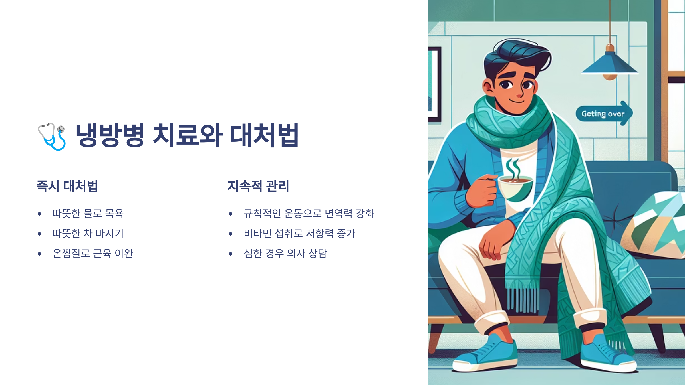 | 따뜻한 음식 섭취 | 생강차, 유자차, 따뜻한 국물 등 |