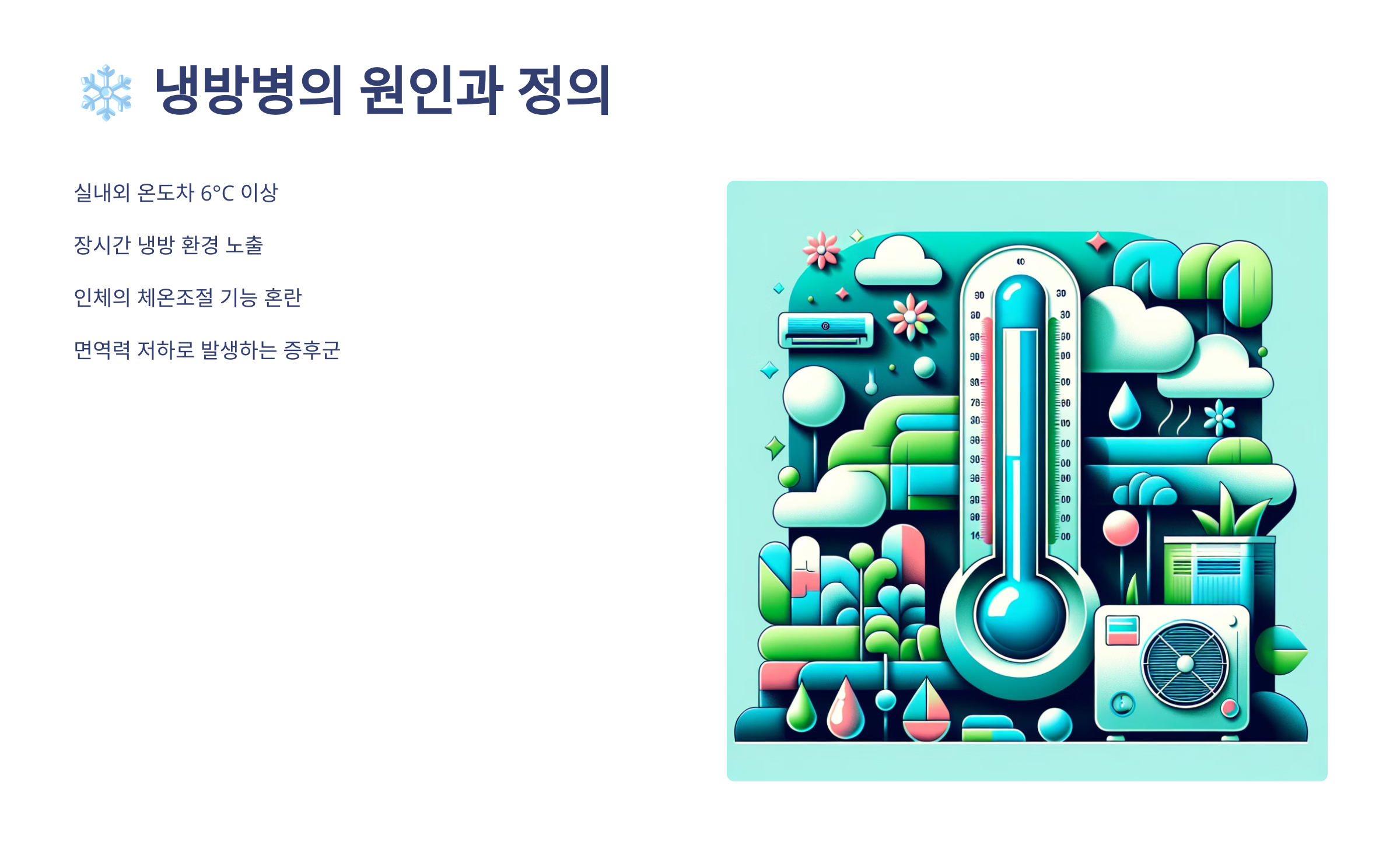 | 지속적 냉방 노출 | 면역력 저하 |