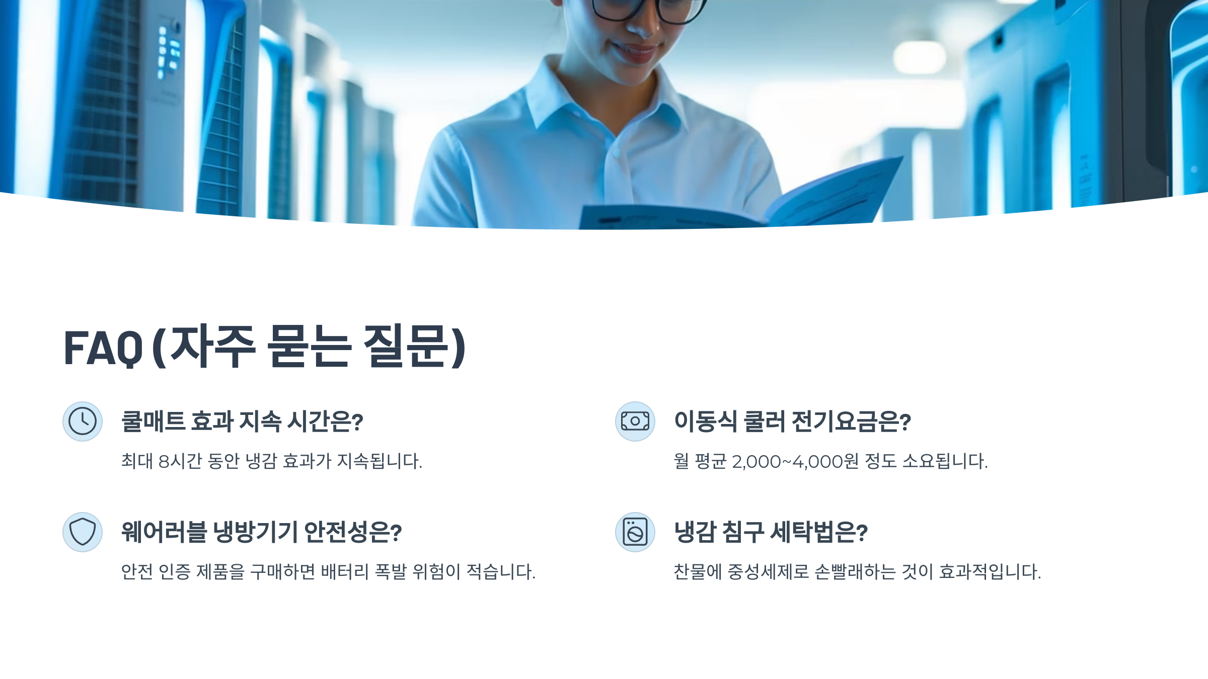๋ํ ์ ์ํจ์น์ฒ๋ผ ์ด์ ํก์ํ๋ ๋ฐ๋์ฒด ๊ธฐ๋ฐ ๋๊ฐ ์ฅ์น๋ ํผ๋ถ์ ์ง์ ๋ถ์ฐฉํ ์ ์์ด์ ์ฆ๊ฐ์ ์ธ ์์ํจ์ ์ค์. ์ฟจ๋ง ํจ์น๋ ์ด์ด ๋ง์ ๋ถ์์ ๋ถ์ด๋ฉด ์ฒด์จ ์กฐ์ ์ ํจ๊ณผ์ ์ด์์.