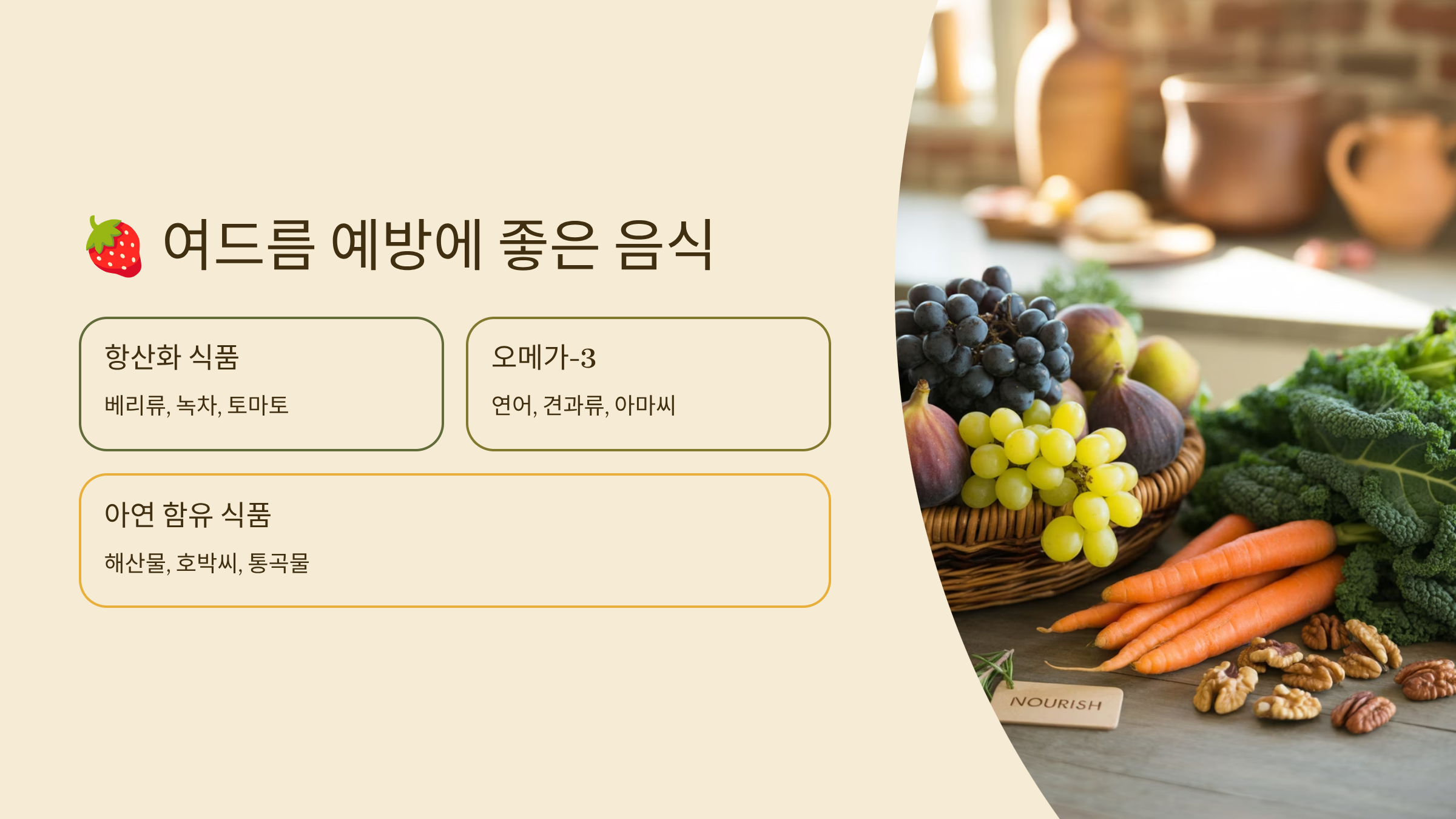 | 견과류·씨앗류 | 지질 보호막 형성 및 항염 효과 |