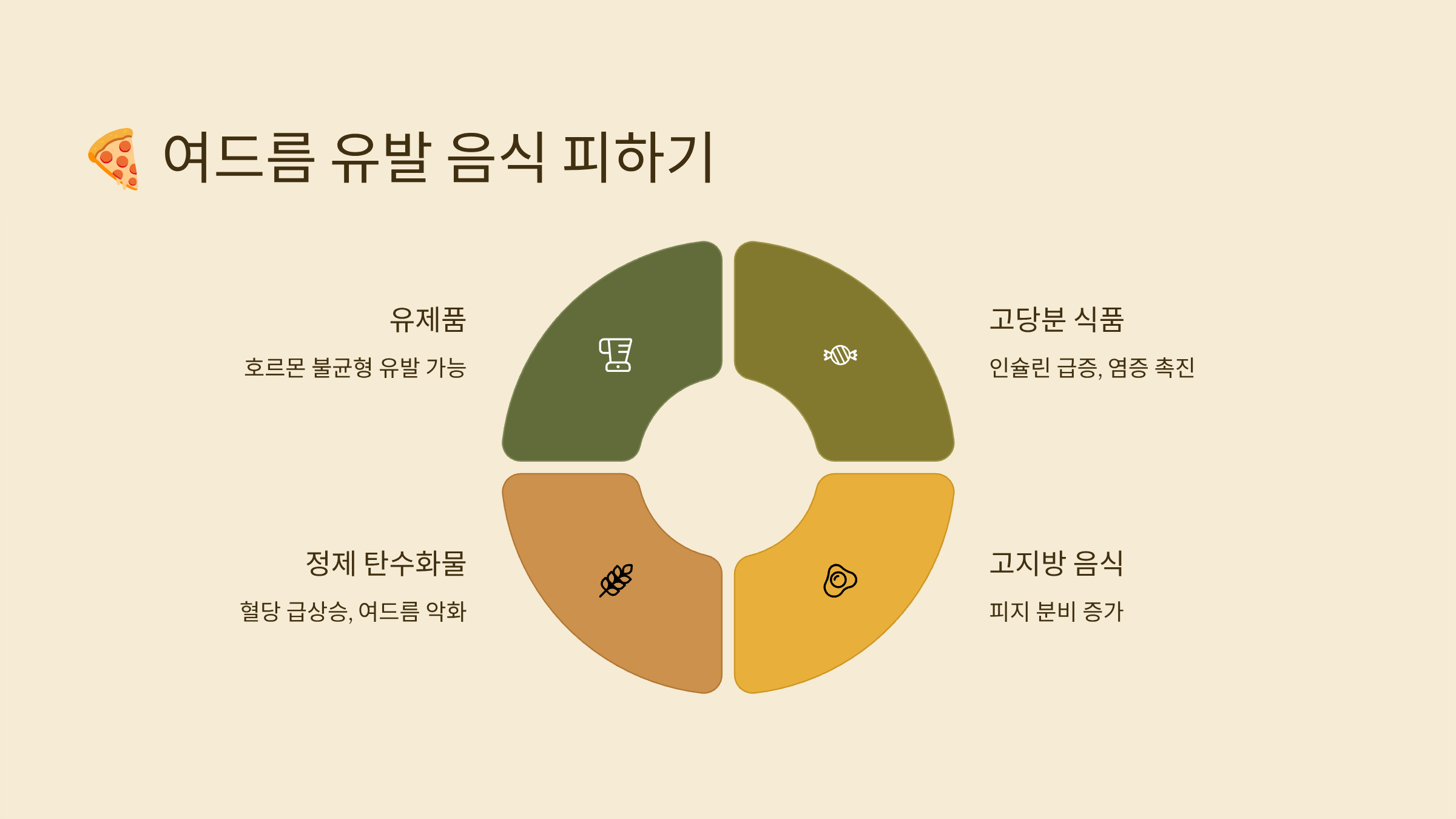 | 고당분 섭취 | 피지 분비 증가 → 여드름 악화 |