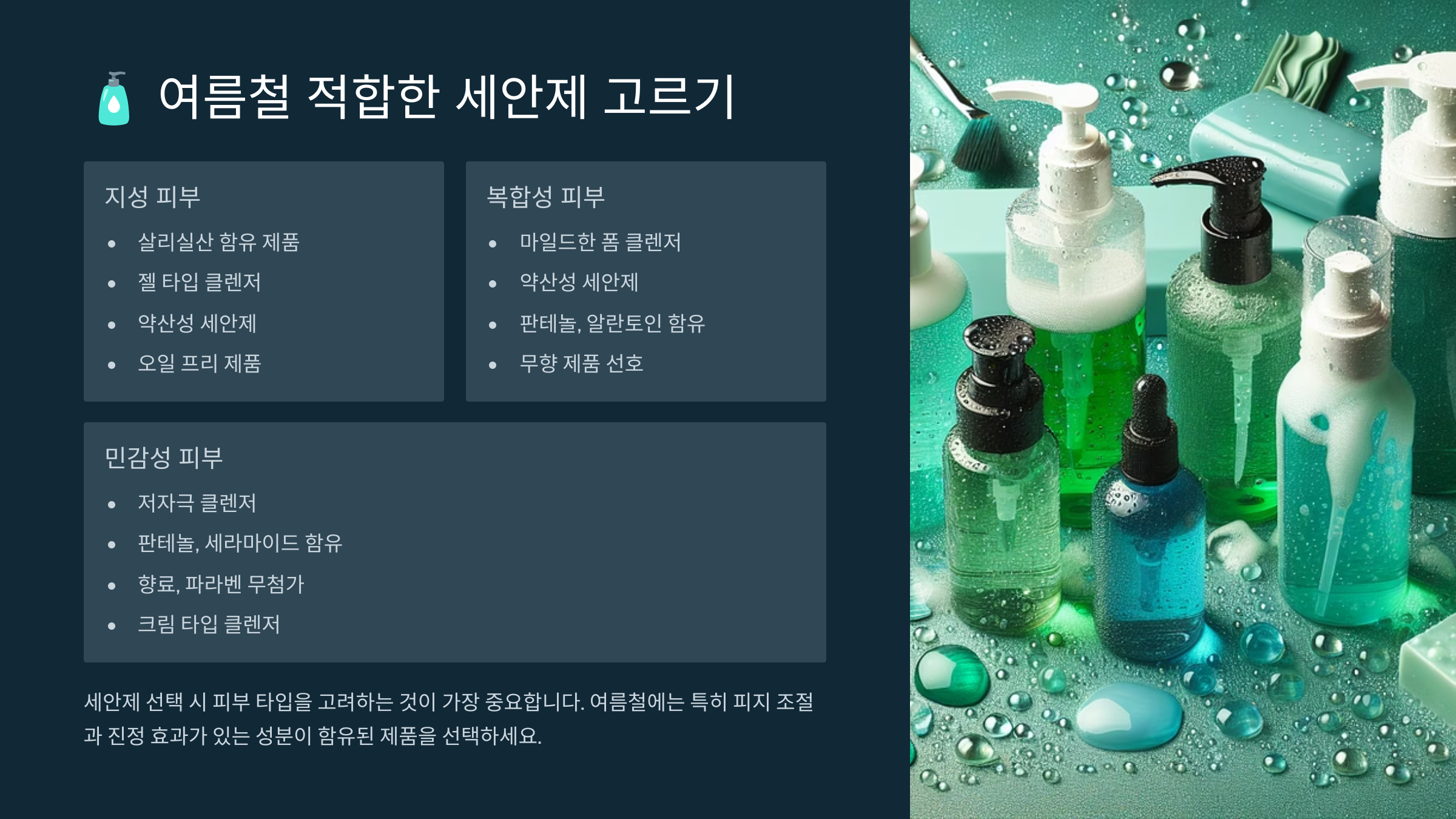 세안 횟수만큼 중요한 게 바로 어떤 세안제를 쓰느냐예요. 여름철 여드름 피부는 특히 민감하고 예민하니, 아무 제품이나 쓰면 안 돼요.