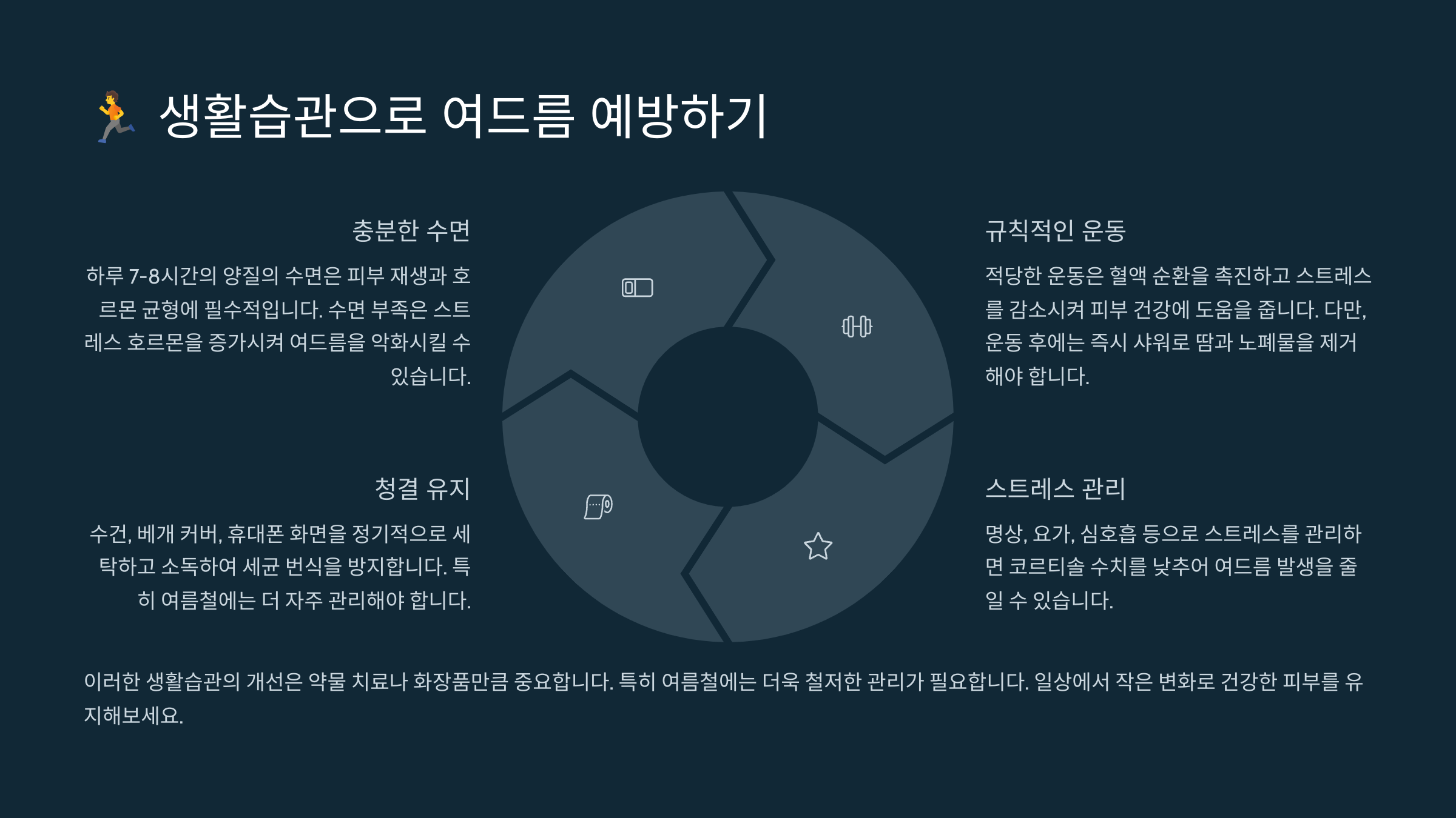 내가 생각했을 때, 여름철 여드름은 단순히 날씨 때문이 아니라 일상 속 사소한 습관들이 복합적으로 작용해서 생기는 경우가 많아요.