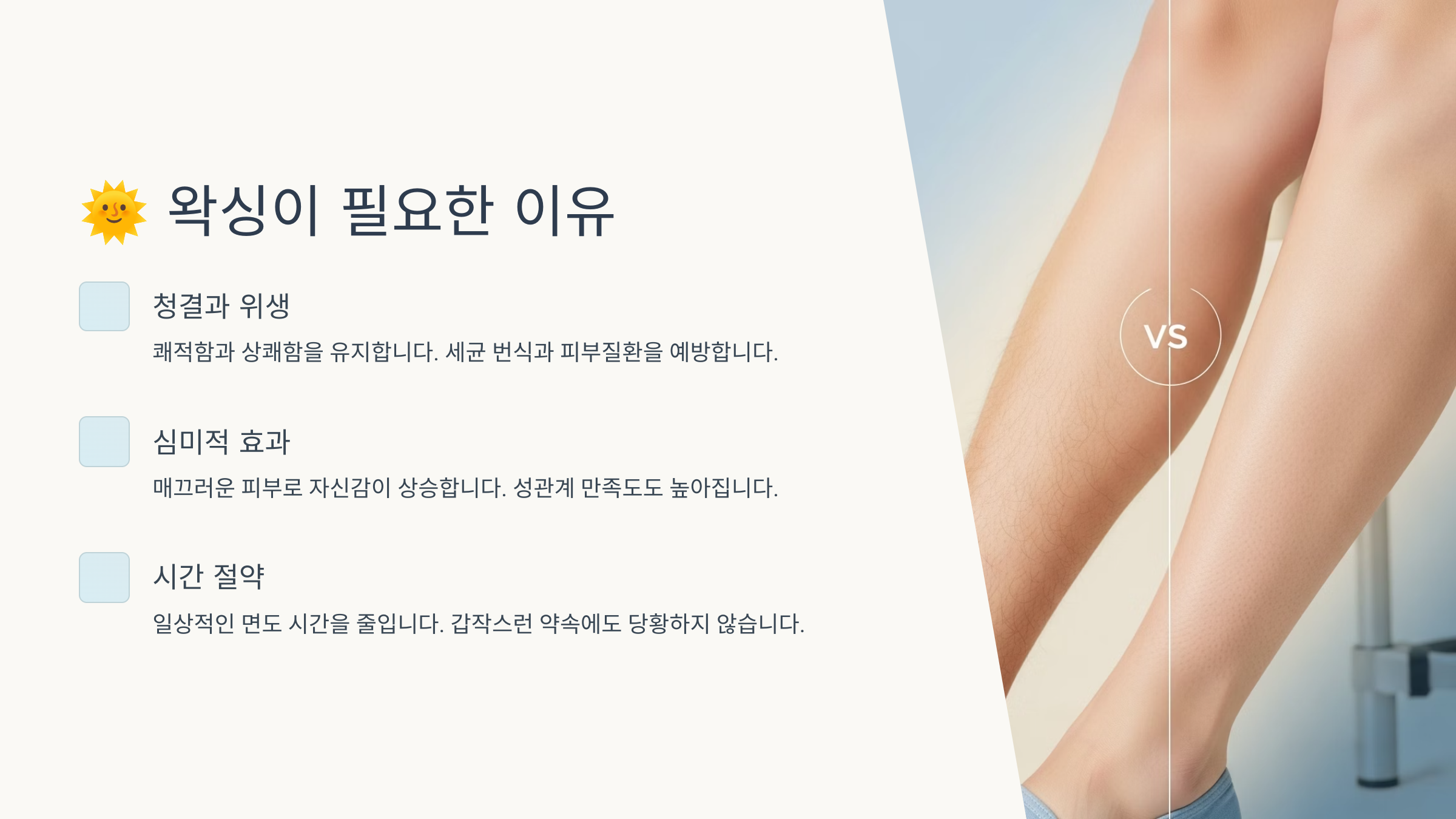 ๊ทธ๋ฆฌ๊ณ ๋ฉด๋์ ๋นํด ์์ฑ์ ๋ ์ค๋ซ๋์ ๊นจ๋ํ ์ํ๋ฅผ ์ ์งํ ์ ์์ด์ ์ฅ๊ธฐ์ ์ธ ํจ๊ณผ๋ ์ข์์. ๋ฉด๋๋ ํ๋ฃจ๋ ์ดํ์ด๋ฉด ๋ค์ ์๋ผ๊ธฐ ์์ํ์ง๋ง, ์์ฑ์ 3~4์ฃผ๊น์ง ํจ๊ณผ๊ฐ ์ง์๋๊ธฐ ๋๋ฌธ์ ๊ด๋ฆฌ๊ฐ ํจ์ฌ ์์ํ๋ต๋๋ค.