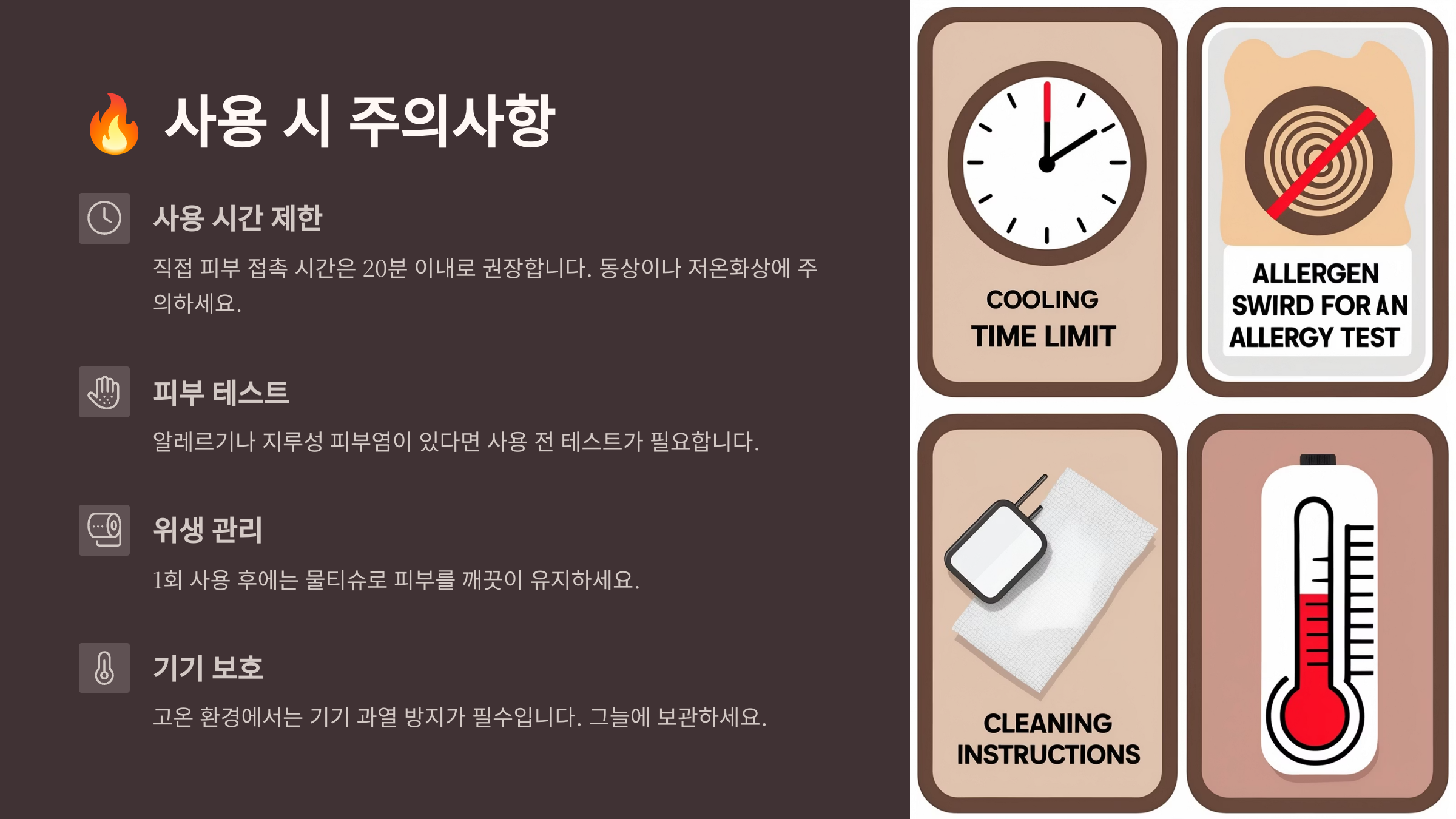 | ์ฅ์๊ฐ ์ฌ์ฉ ๊ธ์ง | ํผ๋ถ ์๊ทน ๋ฐฉ์ง ์ํด ์์น ๋ณ๊ฒฝ |