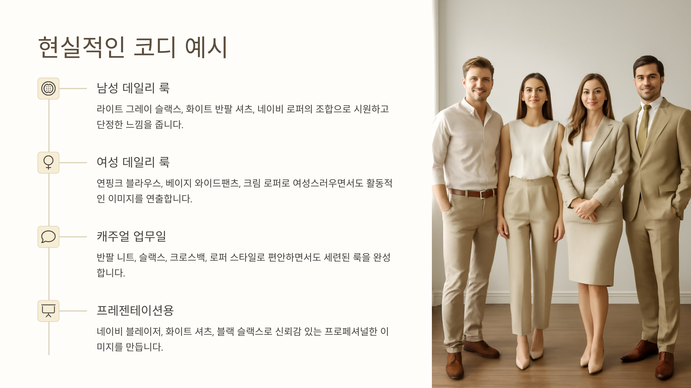 ์ปฌ๋ฌ ์กฐํฉ์์ ์ค์ํ ๊ฑด '์กฐํ๋ก์'์ด์์. ํค์ด ๋ง์ง ์์ผ๋ฉด ์ง์ ๋ถํด ๋ณด์ผ ์ ์๊ธฐ ๋๋ฌธ์, ํค์จํค(๋น์ทํ ๋ช ๋), ํค์ธํค(๋น์ทํ ์์๊ตฐ)์ผ๋ก ๋ง์ถ๋ ๊ฒ ์คํจ ์๋ ํ์ด์์.