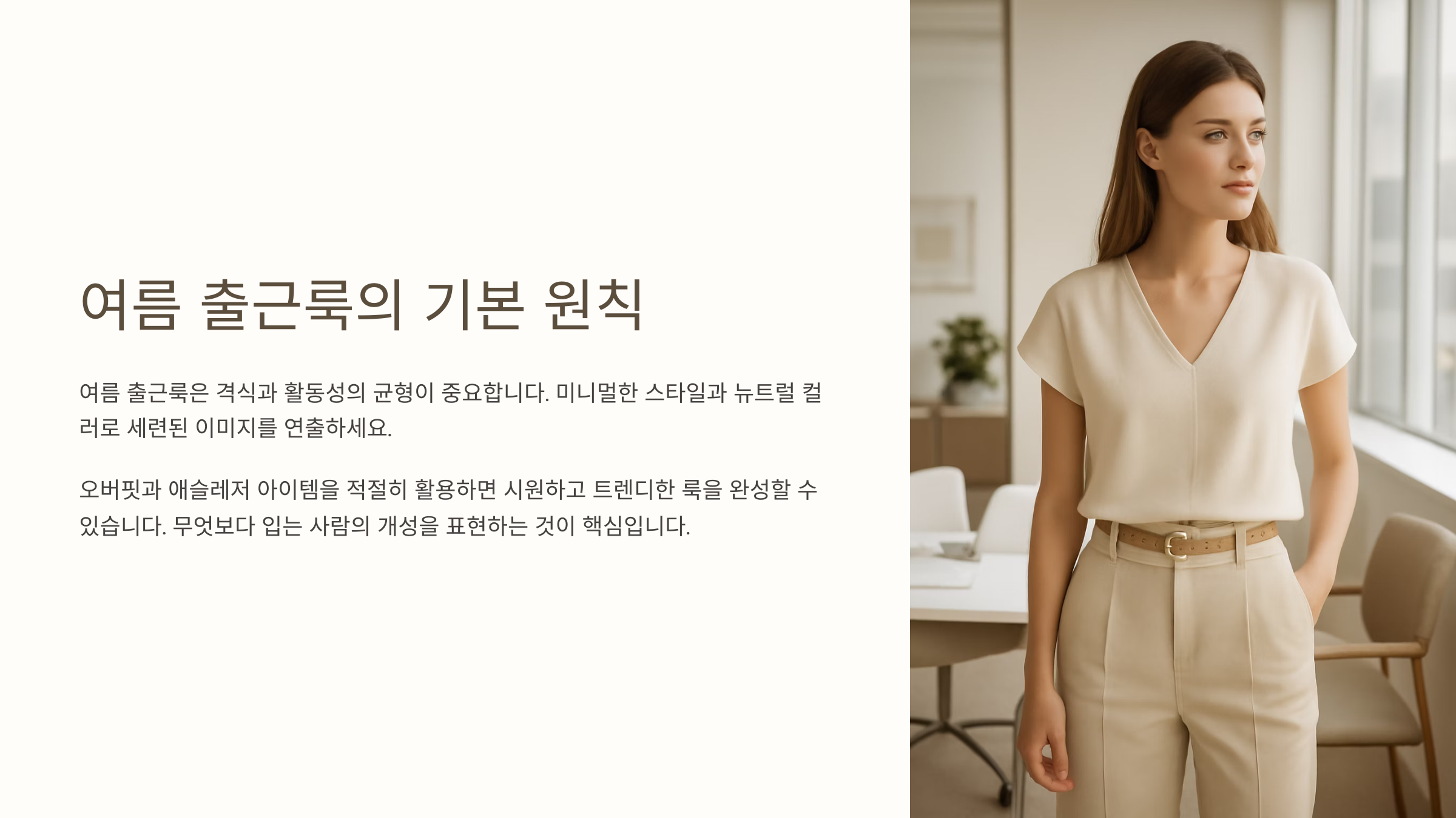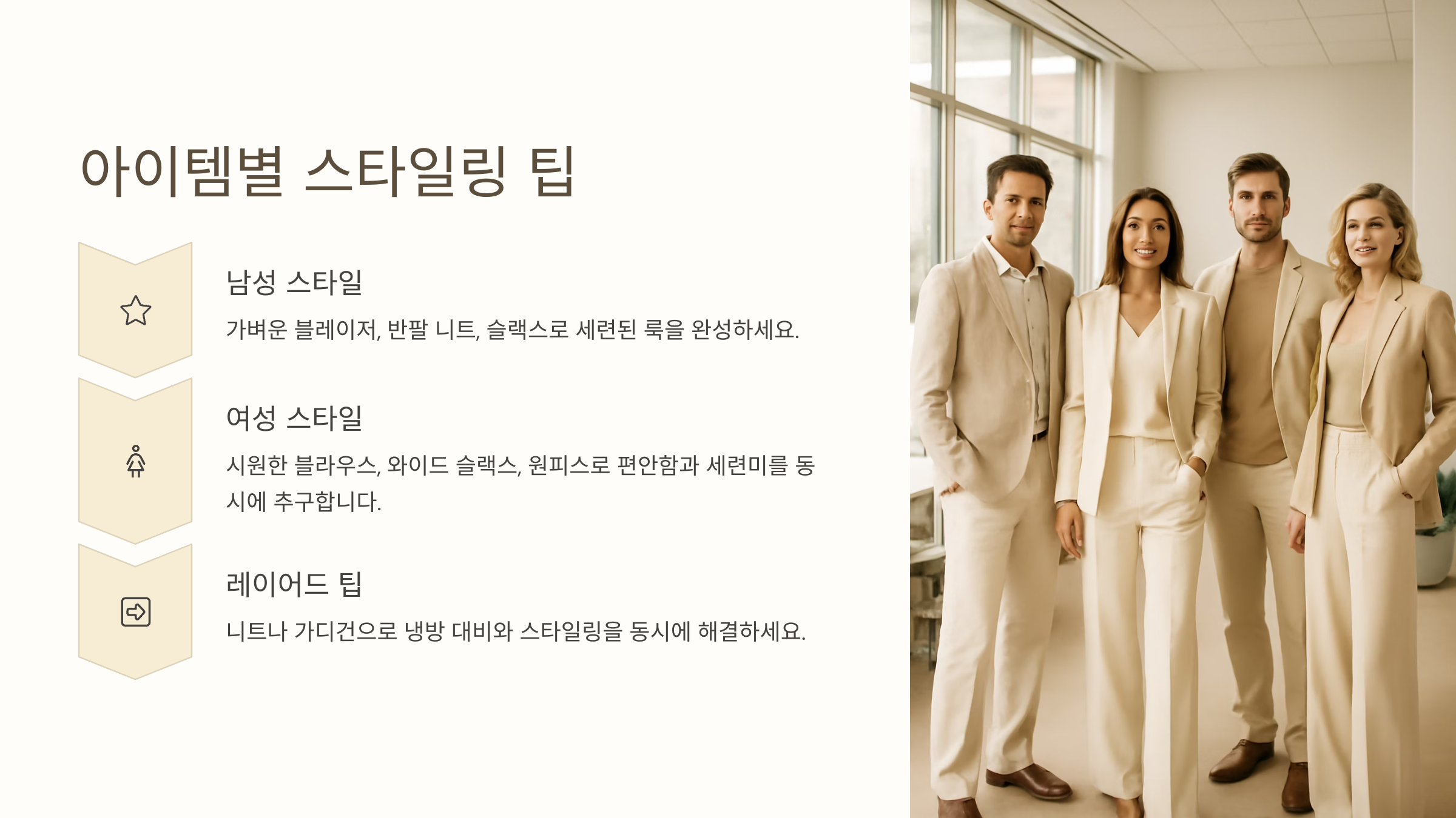 ์ค์ ์ง์ฅ์ธ๋ค์ด ๊ฐ์ฅ ๋ง์ด ์ ํํ๋ ์ฌ๋ฆ ์ถ๊ทผ๋ฃฉ ์กฐํฉ์ ๋ธ๋ผ์ฐ์ค+์ฌ๋์ค์์. ์ฌ๊ธฐ์ ์ ์ ํ ๋ฆฐ๋จ ์ฌํท์ ๋ํ๋ฉด ๊ฐ๋จํ๋ฉด์๋ ์์ฑ๋ ๋์ ๋ฃฉ์ด ๋ผ์. ์ฌํท์ ๋ฌด๊ฒ์ง ์๊ณ ์์ ์๋จ์ด์ด์ผ ํ๊ณ , ์ปฌ๋ฌ๋ ํ์ดํธ ๊ณ์ด์ด ์ ์ผ ๊น๋ํด์.