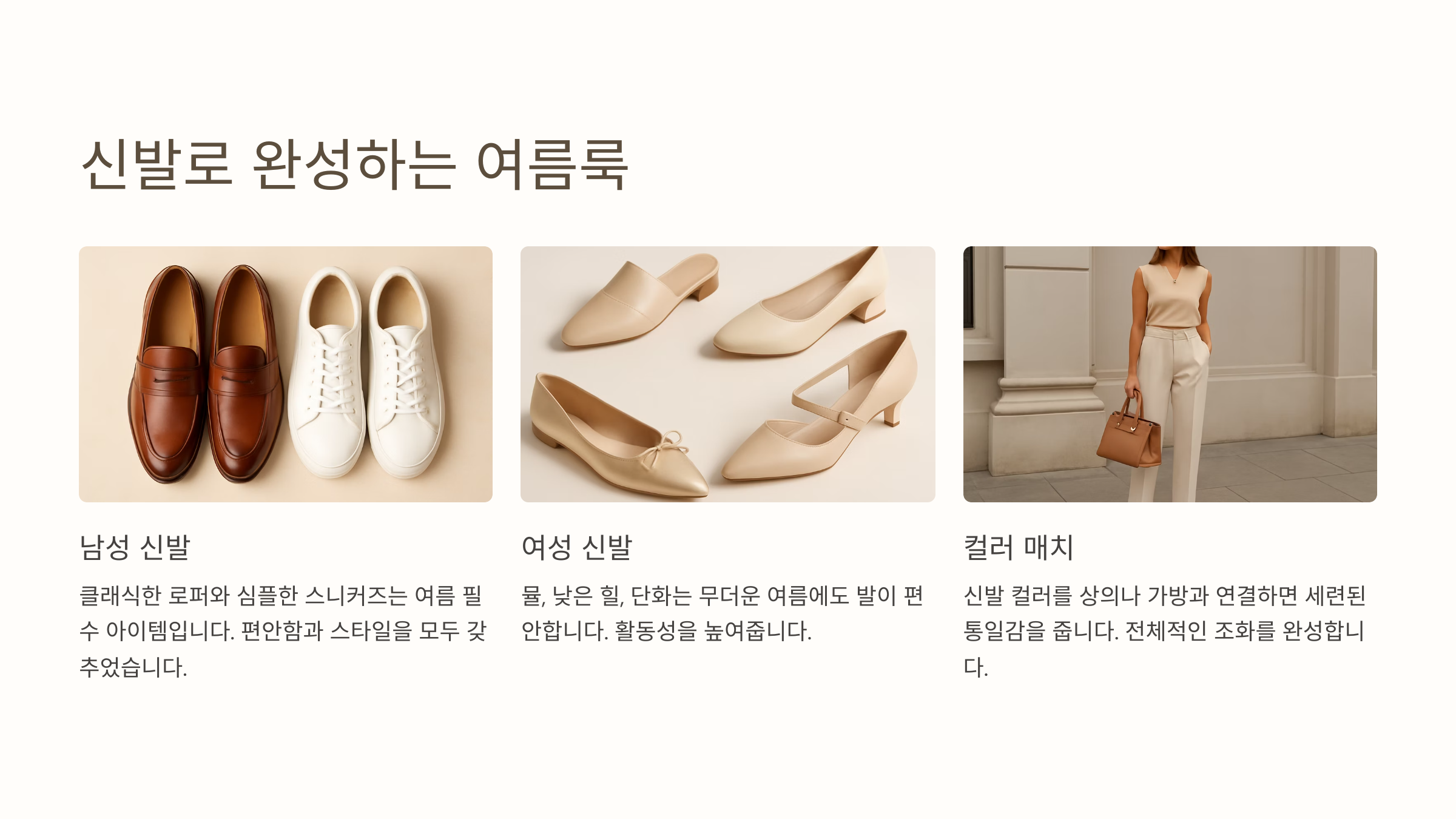 ์ฌ๋ฆ์ฉ ์๋ค์ ์์ ์คํธ๋ฉ์ด ๋ง์ ๋์์ธ๋ณด๋ค ํ๋ ๋ํ ์ผ์ด ์๋ ์ ํ์ด ๋ ๊ณ ๊ธ์ค๋ฝ๊ณ ์คํผ์ค๋ฃฉ์ ์ ํฉํด์. ์คํ์ด ์์ฝ, ๋งคํธํ ์ง๊ฐ, 3~5cm ์ ๋์ ์์ ๊ฐ ์๋ ๊ตฝ์ด ์ฌ๋ฆ ์ถ๊ทผ๋ฃฉ ์์ฑ์ ํต์ฌ์ด๋๋๋ค!