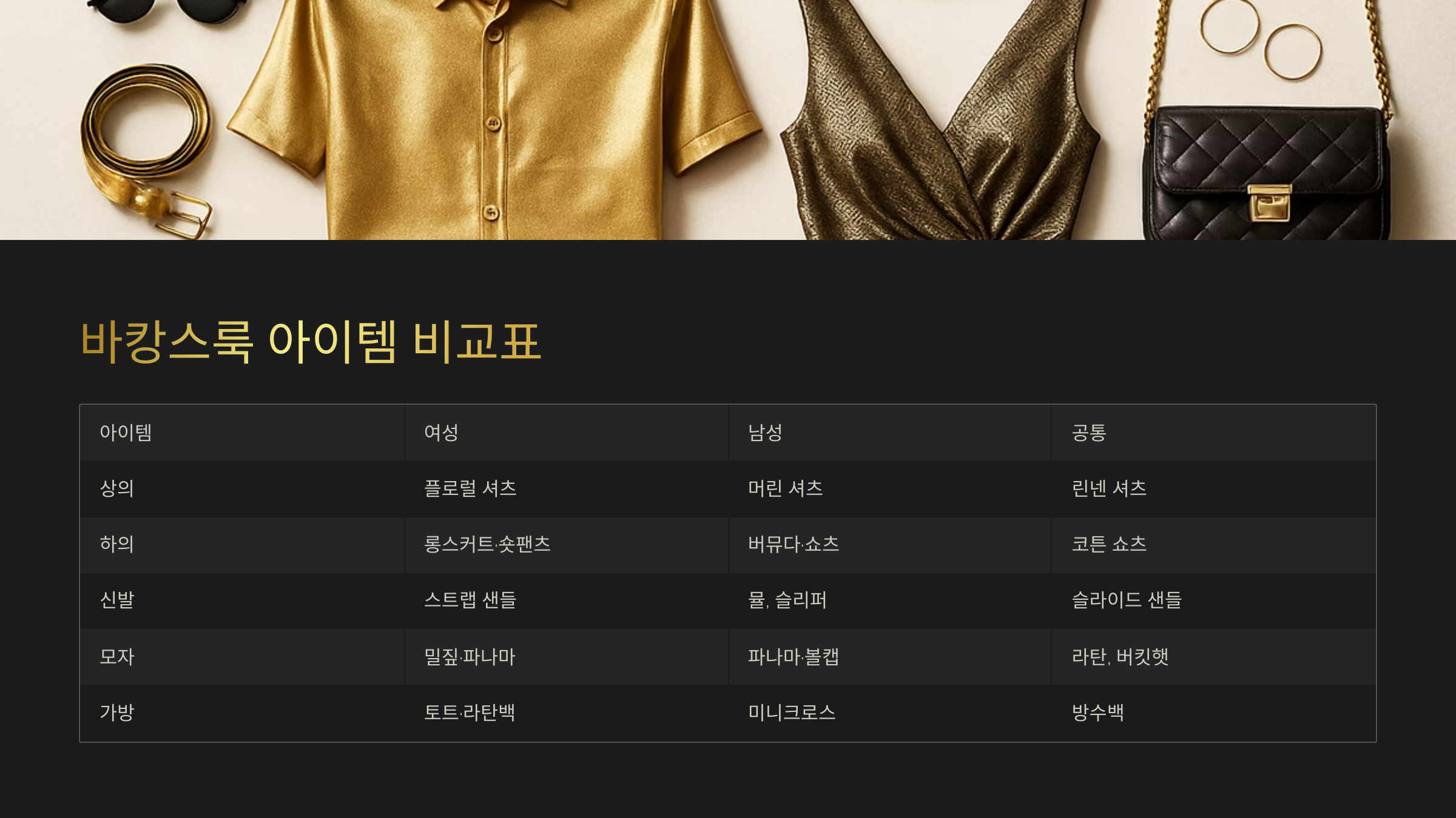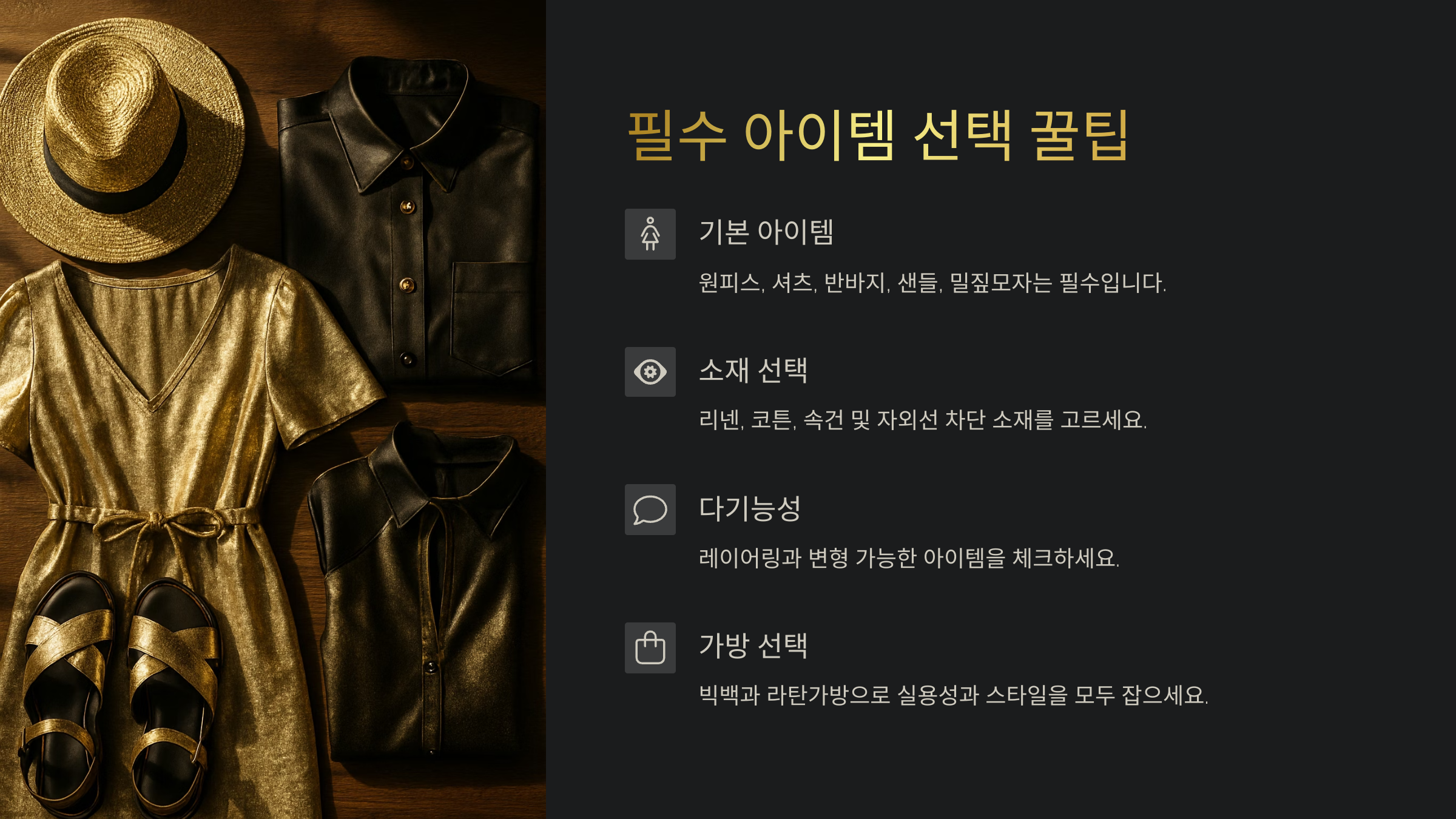 ์๋ฅผ ๋ค์ด ํด๋ณ์์๋ ๋น์น์จ์ด ์ค์ฌ์ผ๋ก, ์ํฐ ์ฌํ์์๋ ๋ฐ์ผ๋ฆฌํ๊ฒ ํ์ฉํ ์ ์๋ ์ฌ๋ฆ๋ฃฉ์ผ๋ก, ๋ฆฌ์กฐํธ์์๋ ๋๋ ์ํ๊ณ ๊ฐ์ฑ์ ์ธ ๋ฃฉ์ด ์ด์ธ๋ ค์. ์คํ์ผ๋ง ์์ดํ ๋ ๊ฐ๊ฐ ์ด์ธ๋ฆฌ๋ ์กฐํฉ์ด ๋ค๋ฅด๋ต๋๋ค. ๐๏ธ๐๏ธ