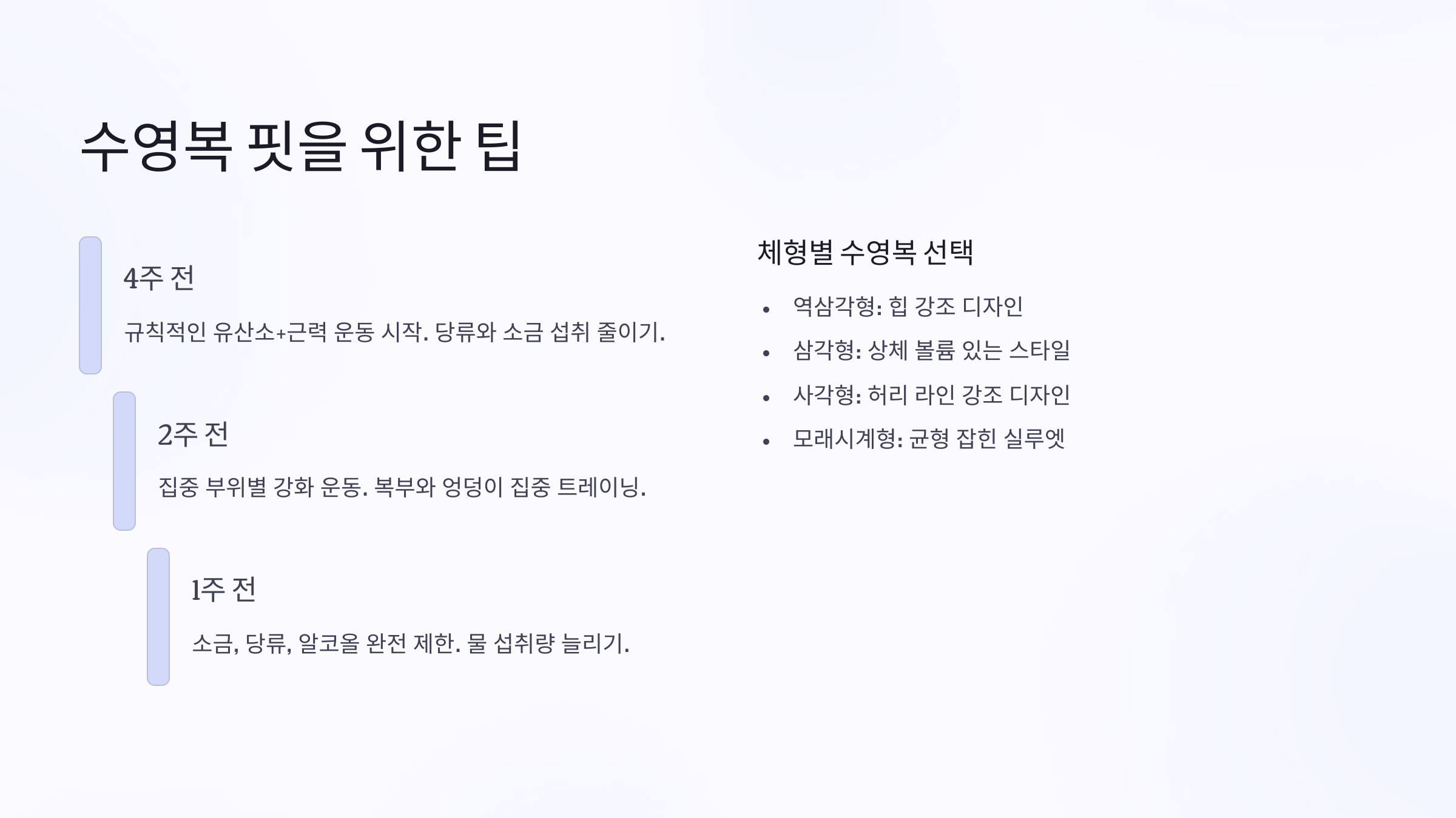 ์๋ฅผ ๋ค์ด, 7์ ์ด ํด๊ฐ๋ฅผ ๊ณํํ๊ณ ์๋ค๋ฉด 5์ ๋ง๋ถํฐ ์ด๋๊ณผ ์๋จ ๊ด๋ฆฌ๋ฅผ ์์ํ๋ ๊ฒ ์ข์์. ๊ทธ๋ ๊ฒ ํ๋ฉด 6์ ๋ง์๋ ์ ์์ด ๋์ด ๊ฒฐ๊ณผ๋ ์์ฐ์ค๋ฝ๊ฒ ๋ํ๋๋ต๋๋ค. ๋จ๊ธฐ๊ฐ์ 3~5kg ์ ๋ ์ค์ด๋ ๊ฒ์ ์ถฉ๋ถํ ๊ฐ๋ฅํ์ง๋ง, ‘๋ผ์ธ์ ์์๊ฒ ๋ง๋๋ ๊ฒ’์ด ํต์ฌ์ด์์.