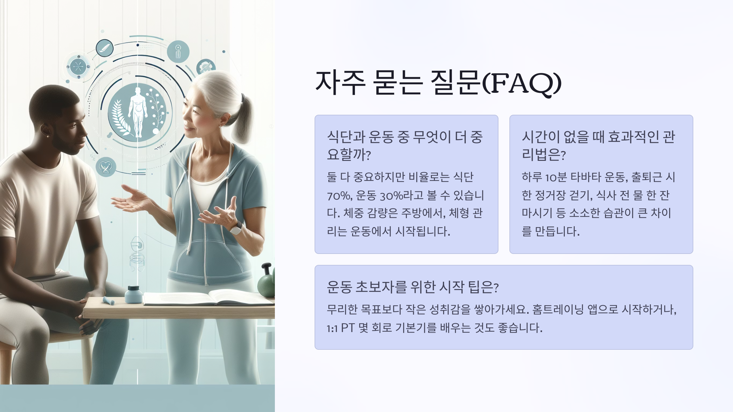 A8. ๊ทน๋จ์ ์ธ ๋ฐฉ์์ด ์๋๋ผ ์์ต๊ด, ์ํ์ต๊ด, ์ด๋์ ์ฒ์ฒํ ๋ฃจํดํํ๋ ๊ฒ ์ค์ํด์. ๋ด๊ฐ ๊ฐ๋นํ ์ ์๋ ๋ฒ์์์ ์ฒ์ฒํ ๋ฐ๊พธ๋ฉด ์ ์ง๋ ์ฌ์์. ๐