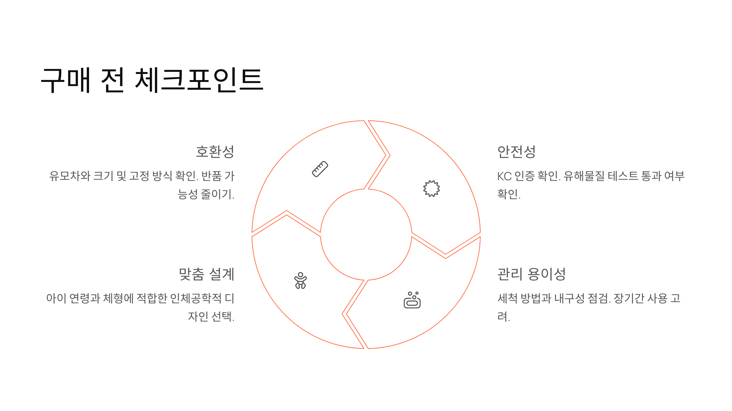 ๊ธฐ๋ณธ์ ์ผ๋ก ๋๋ถ๋ถ์ ์ ๋ชจ์ฐจ์ ํธํ ๊ฐ๋ฅํ๋๋ก ์ค๊ณ๋์ด ์์ด์, ๋ณ๋์ ์กฐ์ ์์ด๋ ๊ฐํธํ๊ฒ ์ฅ์ฐฉํ ์ ์์ด์. ์ฐฉ์ฉ๋ ์ฝ๊ณ ์ธํ๋ ๊ฐํธํด์ ์์ฃผ ์ฌ์ฉํ๋ ๋ถ๋ชจ๋๋ค๊ป ํนํ ์ธ๊ธฐ๊ฐ ๋ง์์.