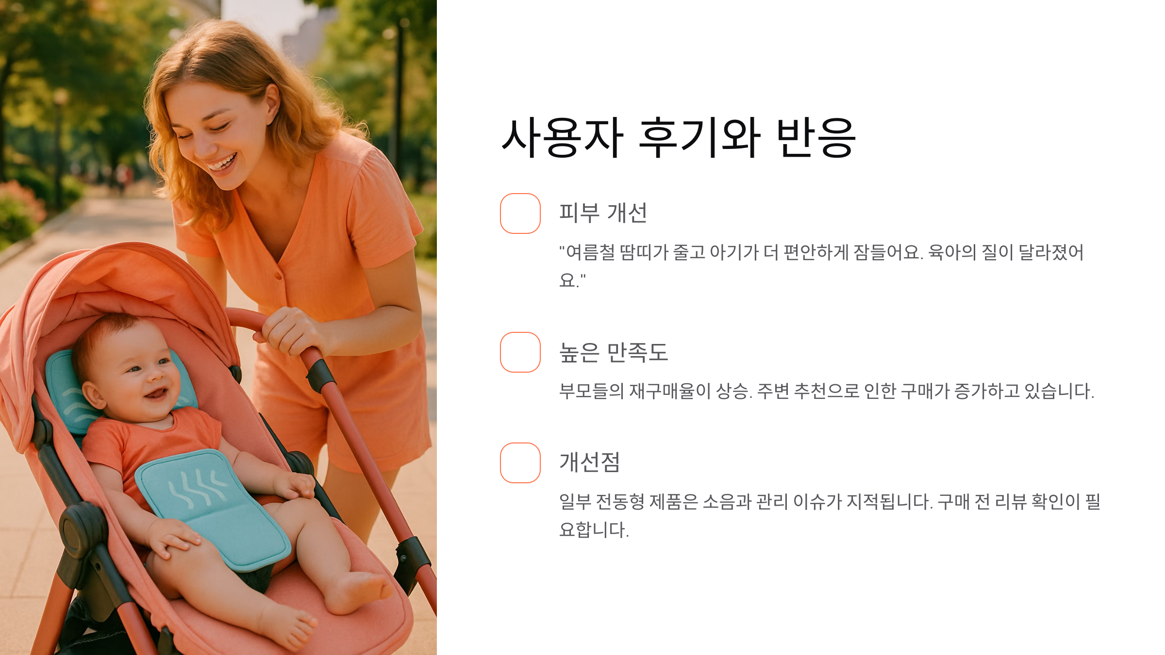 ํ ๋ถ๋ชจ๋์ “์์ด๊ฐ ์ธ์ถ ์ค ๊ณ์ ์ง์ฆ ๋ด๋ ๊ฒ ์ฟจ์ํธ ๋ฐ๊พธ๊ณ ๋์๋ ํ์จ๋ ์๊ณ ๋๋ฌด ์กฐ์ฉํด์ ๊น์ง ๋๋๋ค”๋ ์ด์ผ๊ธฐ๋ฅผ ๋จ๊ธฐ๊ธฐ๋ ํ์ด์. ๊ทธ๋งํผ ์์ด์๊ฒ ํฐ ์ํฅ์ ์ฃผ๋ ์์ดํ ์ด๋ผ๋ ๋ป์ด์์. ๐ด