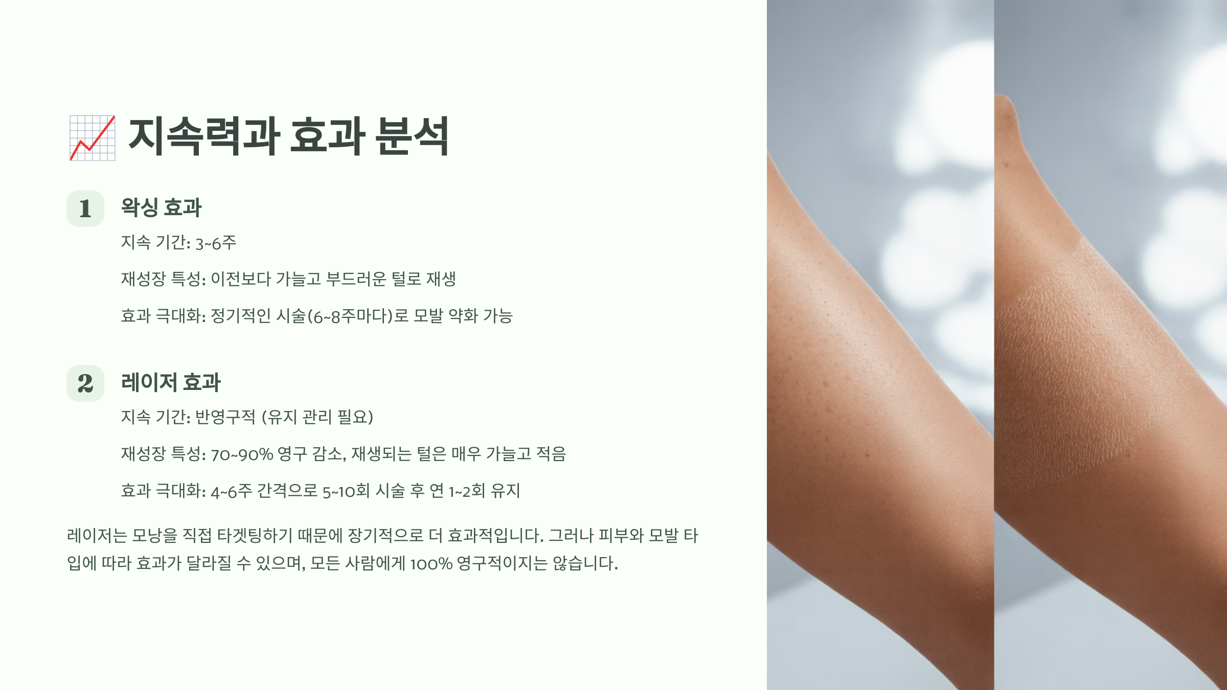 ์์ฑ์ ํธ ๋ฟ๋ฆฌ๊น์ง ๋ฝ๊ธฐ ๋๋ฌธ์ ๋ฉด๋๋ณด๋ค ํจ์ฌ ๊น๋ํ๊ณ ๋ถ๋๋ฌ์ด ๊ฒฐ๊ณผ๋ฅผ ์ค์. ๋ค๋ง ํจ๊ณผ๋ ํ๊ท 3~4์ฃผ ์ ๋์์. ๊ฐ์ธ์ ํธ ์ฑ์ฅ ์๋์ ๋ฐ๋ผ 2์ฃผ ๋ง์ ์๋ผ๋๋ ๊ฒฝ์ฐ๋ ์์ด์.