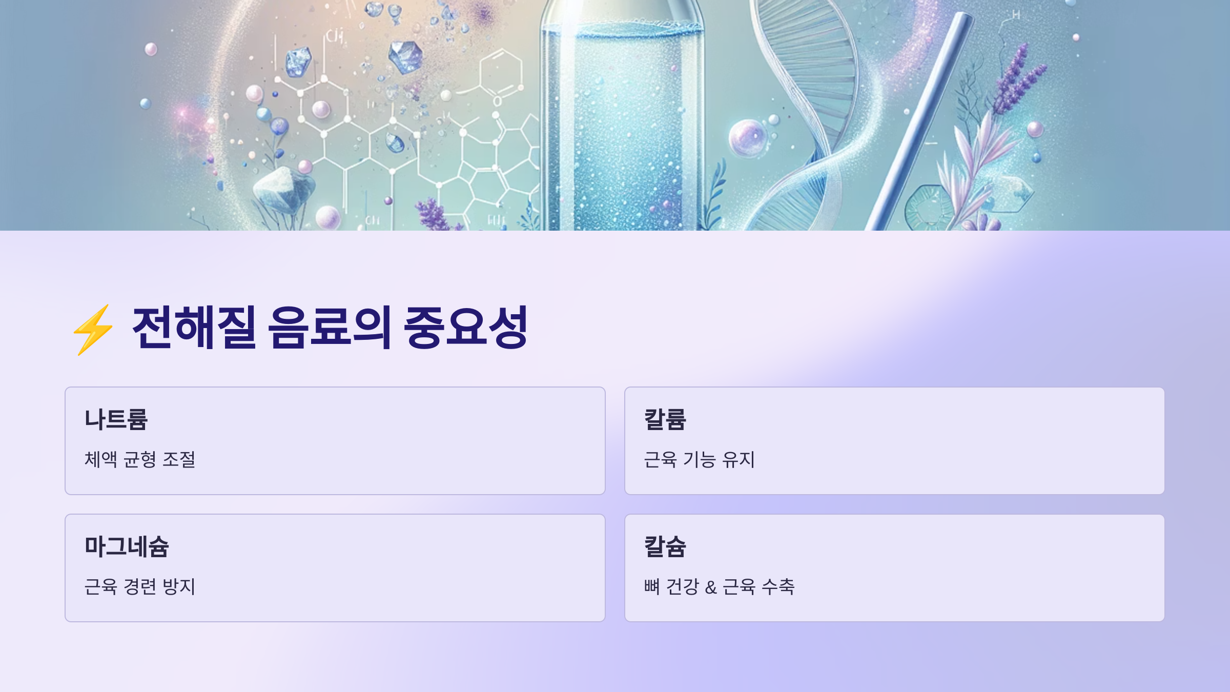 이처럼 전해질은 단순한 영양소가 아니라 운동 후 회복을 위한 핵심 요소예요. 특히 고강도 운동 후에는 꼭 챙겨야 해요.💡