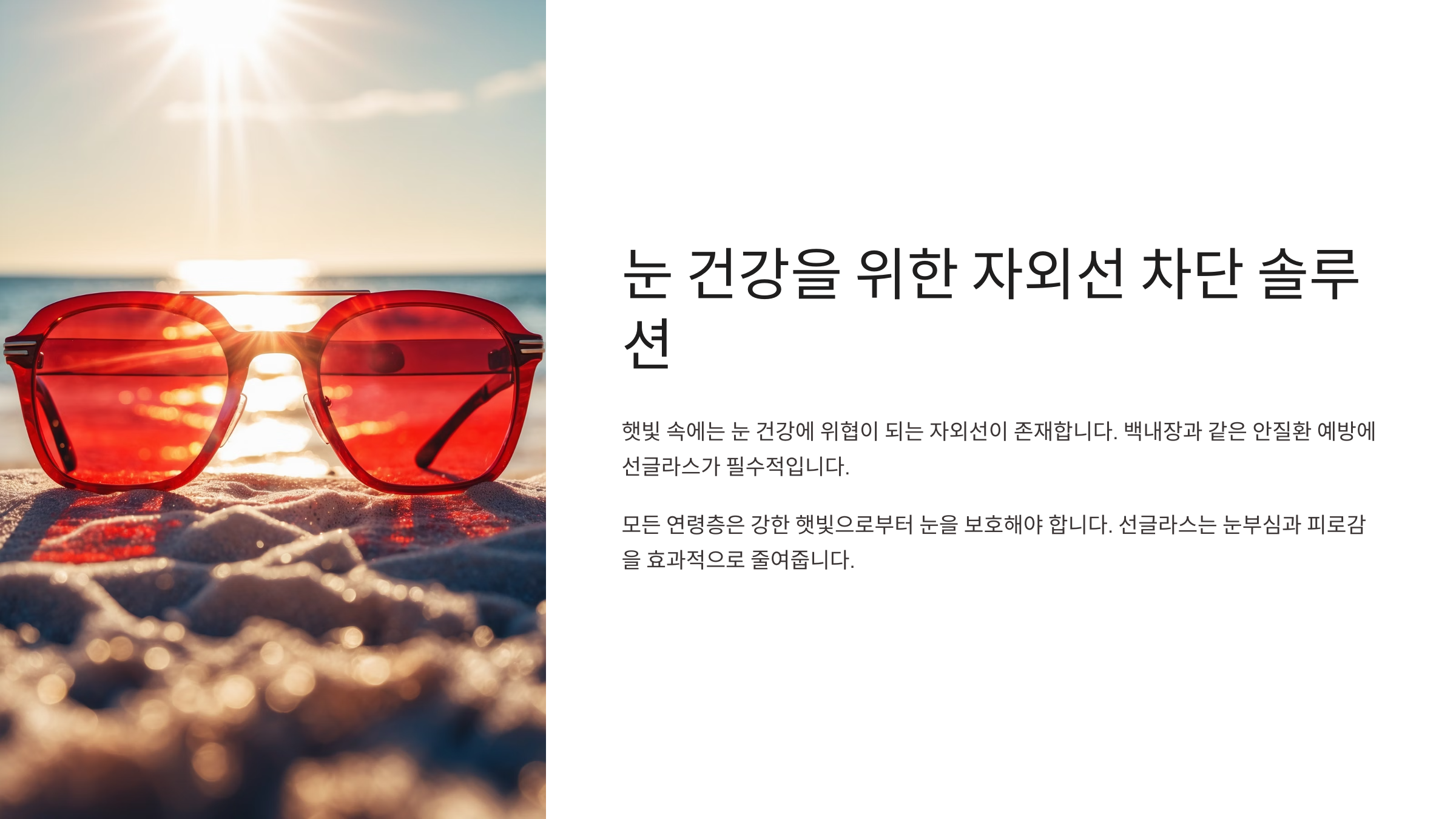 ๋ ๊ฑด๊ฐ์ ํ ๋ฒ ์์๋๋ฉด ๋๋๋ฆฌ๊ธฐ ์ด๋ ค์์. ๊ทธ๋ฌ๋ ์ ๊ธ๋ผ์ค๋ฅผ ์ ํํ ๋๋ ์ธํ๋ณด๋ค ์์ธ์ ์ฐจ๋จ ๊ธฐ๋ฅ์ ์ฐ์ ์ผ๋ก ๊ณ ๋ คํด์ผ ํด์. ์๋ ๋ฒํผ์ ๋๋ฌ์ ์ค์ UV ์ฐจ๋จ ๊ธฐ๋ฅ์ด ์ข์ ์ ํ๋ค์ ํ์ธํด๋ณด์ธ์!
