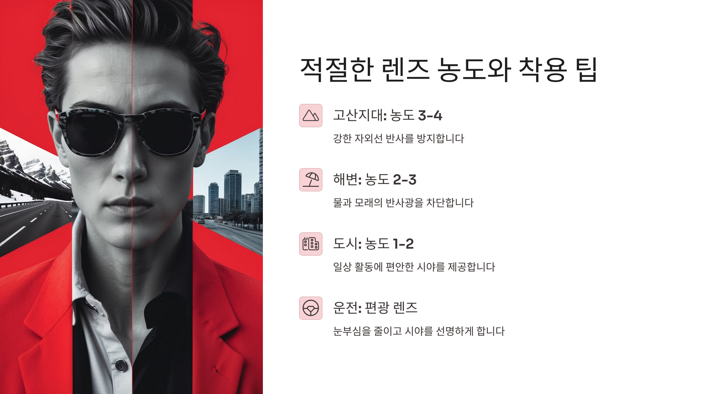 ๋์๊ฒ ๊ผญ ๋ง๋ ์ ๊ธ๋ผ์ค๋ฅผ ์ฐพ๊ธฐ ์ํด์๋ ๋จ์ํ ๋ฉ์ง ๋์์ธ๋ง ๋ณด๋ ๊ฒ ์๋๋ผ, ์์ธ์ ์ฐจ๋จ ์ฑ๋ฅ๊ณผ ์ฐฉ์ฉ๊ฐ, ์ฉ๋๊น์ง ๊ผผ๊ผผํ ์ดํด๋ด์ผ ํด์. ์ ๊ธ๋ผ์ค๋ฅผ ๊ณ ๋ฅผ ๋ ๋จผ์ ๋ด๊ฐ ์ฃผ๋ก ํ๋ํ๋ ํ๊ฒฝ๊ณผ ํ์ํ ๊ธฐ๋ฅ์ ํ์ ํ๋ ๊ฒ ์ข์์. ์๋ฅผ ๋ค์ด, ํด๋ณ์์ ์ค๋ ์๊ฐ ์ผ์ธ ํ๋์ ํ๋ค๋ฉด ๋์ ๋๋์ ๋ ์ฆ์ ํธ๊ด ๊ธฐ๋ฅ์ด ํ์๋๋๋ค.