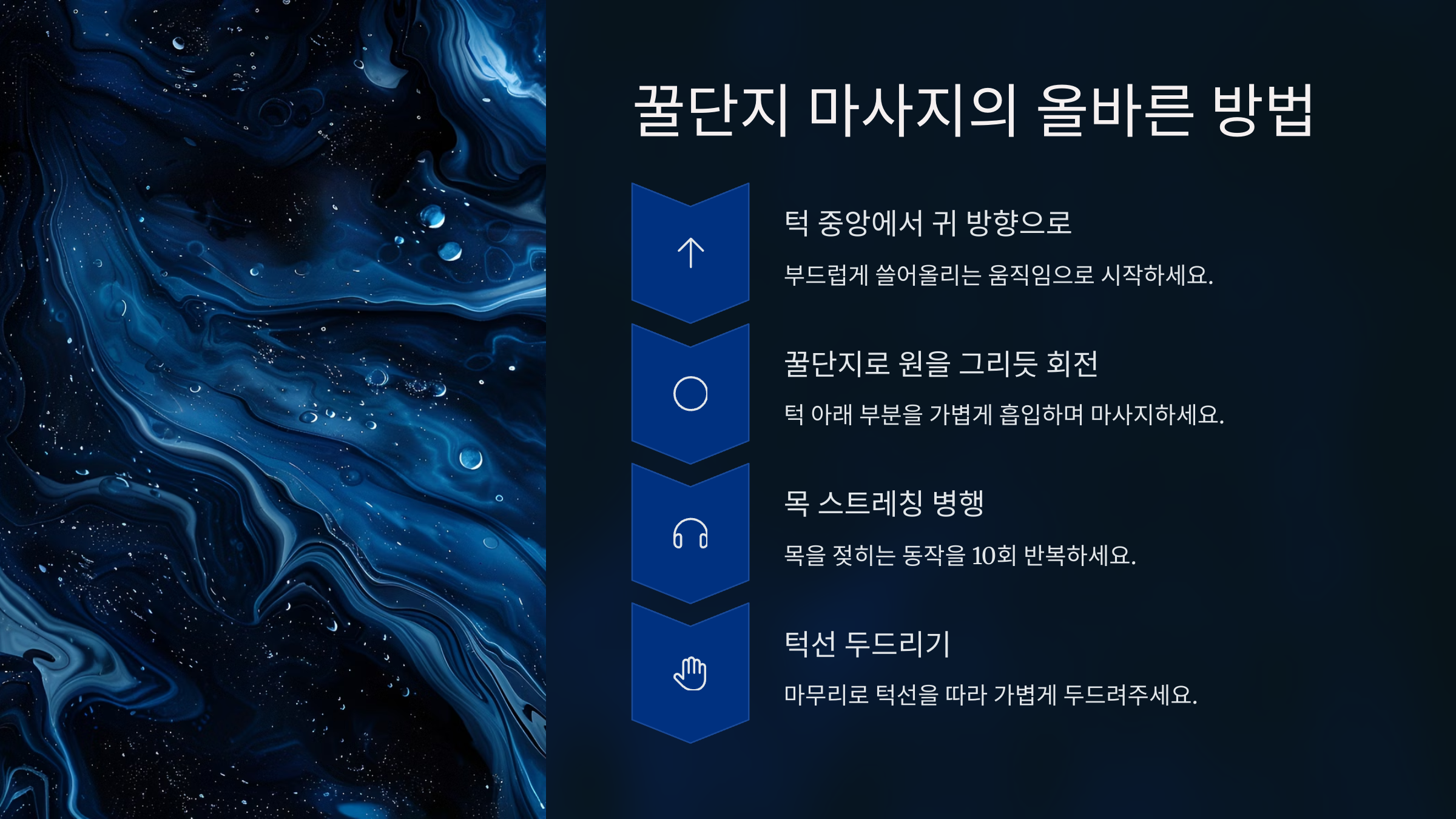 ๊ฟ๋จ์ง ๋ง์ฌ์ง๋ฅผ ํจ๊ณผ์ ์ผ๋ก ํ๊ธฐ ์ํด์๋ ๋ช ๊ฐ์ง ์ ๋ฌธ๊ฐ ํ์ ๊ธฐ์ตํด๋๋ฉด ์ข์์. ์ฒซ์งธ, ๋ง์ฌ์ง๋ฅผ ํ ๋๋ ์์ ํ์ ๋นผ๊ณ ๋ถ๋๋ฝ๊ฒ ์์ง์ฌ์ผ ํด์. ์ธ๊ฒ ๋ฌธ์ง๋ฅด๋ฉด ํผ๋ถ๊ฐ ์๊ทน์ ๋ฐ์ ์คํ๋ ค ํธ๋ฌ๋ธ์ด ์๊ธธ ์ ์๋ต๋๋ค.