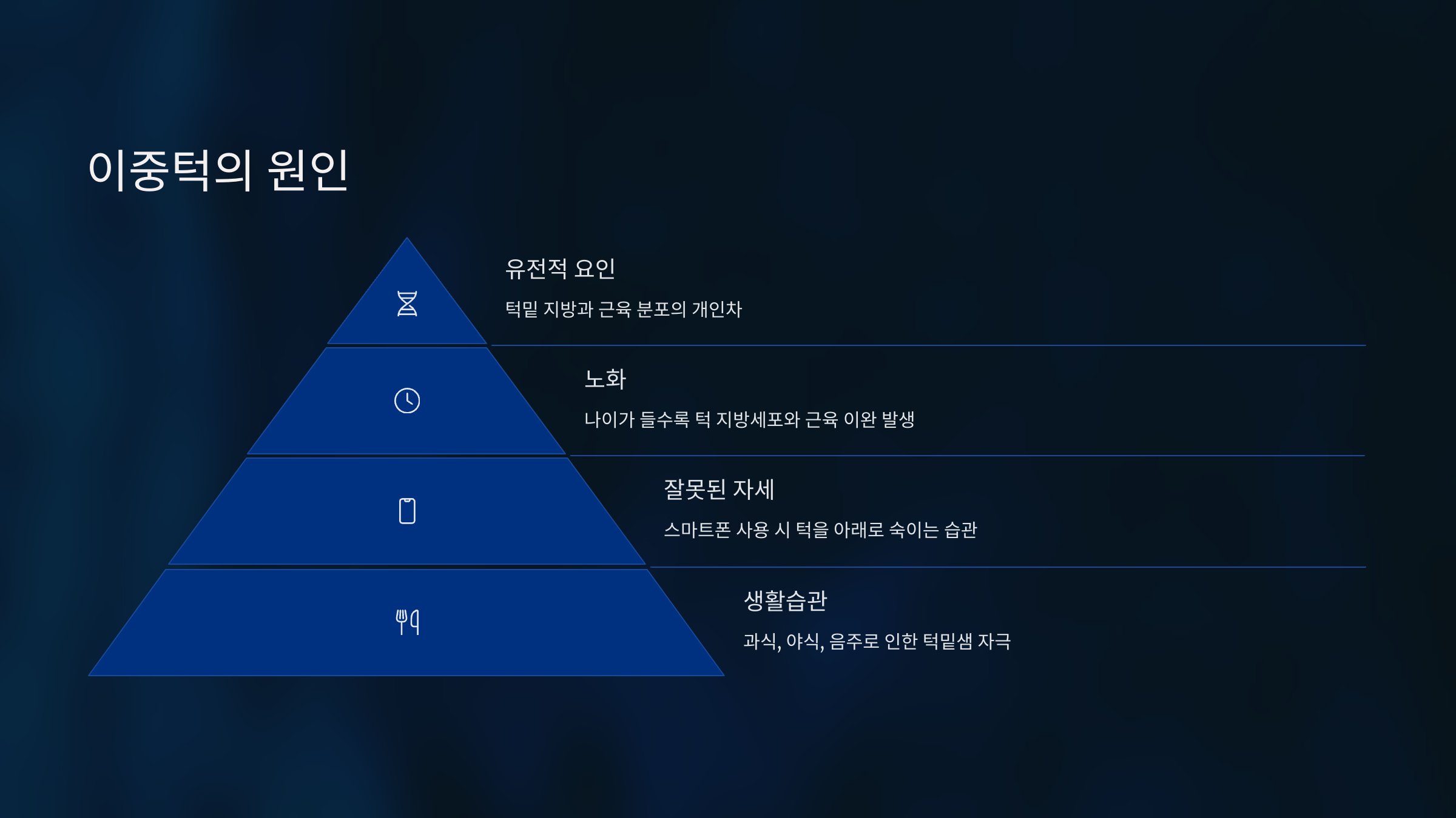 ์ด์คํฑ์ ์ผ๊ตด๊ณผ ๋ชฉ ์ฌ์ด์ ์๊ธฐ๋ ๋ถํ์ํ ์ง๋ฐฉ์ธต์ผ๋ก, ์ผ๊ตด์ ๋ ๋ฅ๊ธ๊ฒ ๋ณด์ด๊ฒ ํด์. ๋ณดํต ์ฒด์ค ์ฆ๊ฐ๋ ์๋ชป๋ ์์ธ, ๋์ด๋ก ์ธํ ํผ๋ถ ํ๋ ฅ ์ ํ ๋ฑ์ด ์ฃผ์ ์์ธ์ด๋๋๋ค.