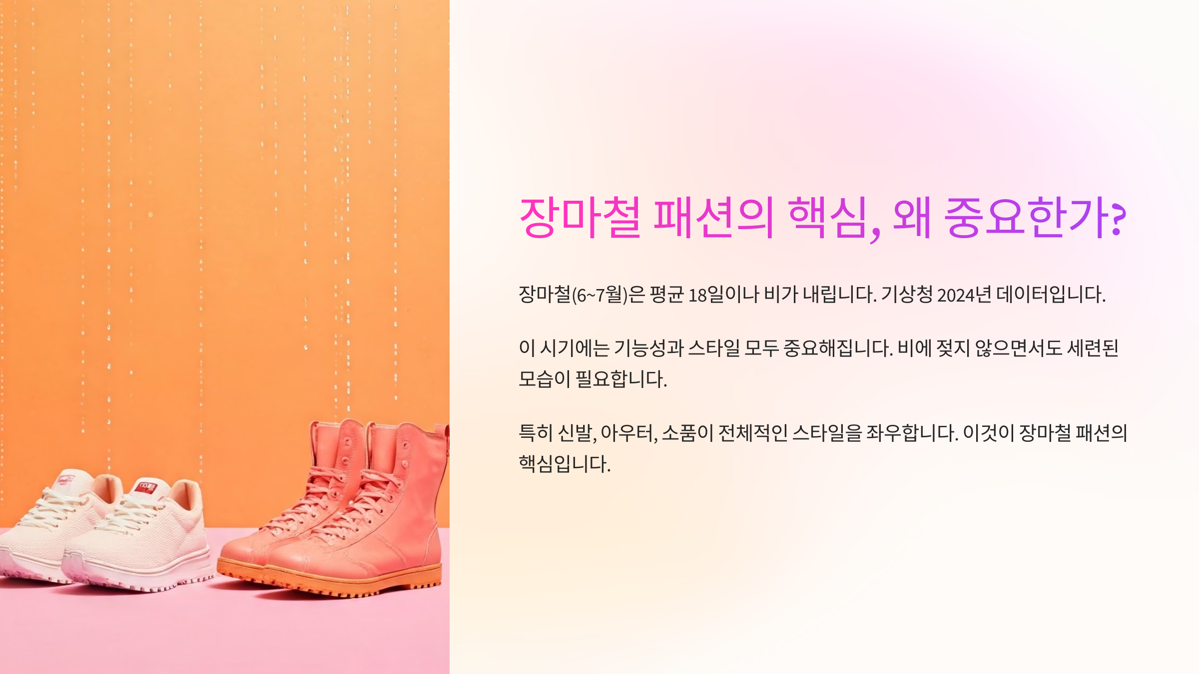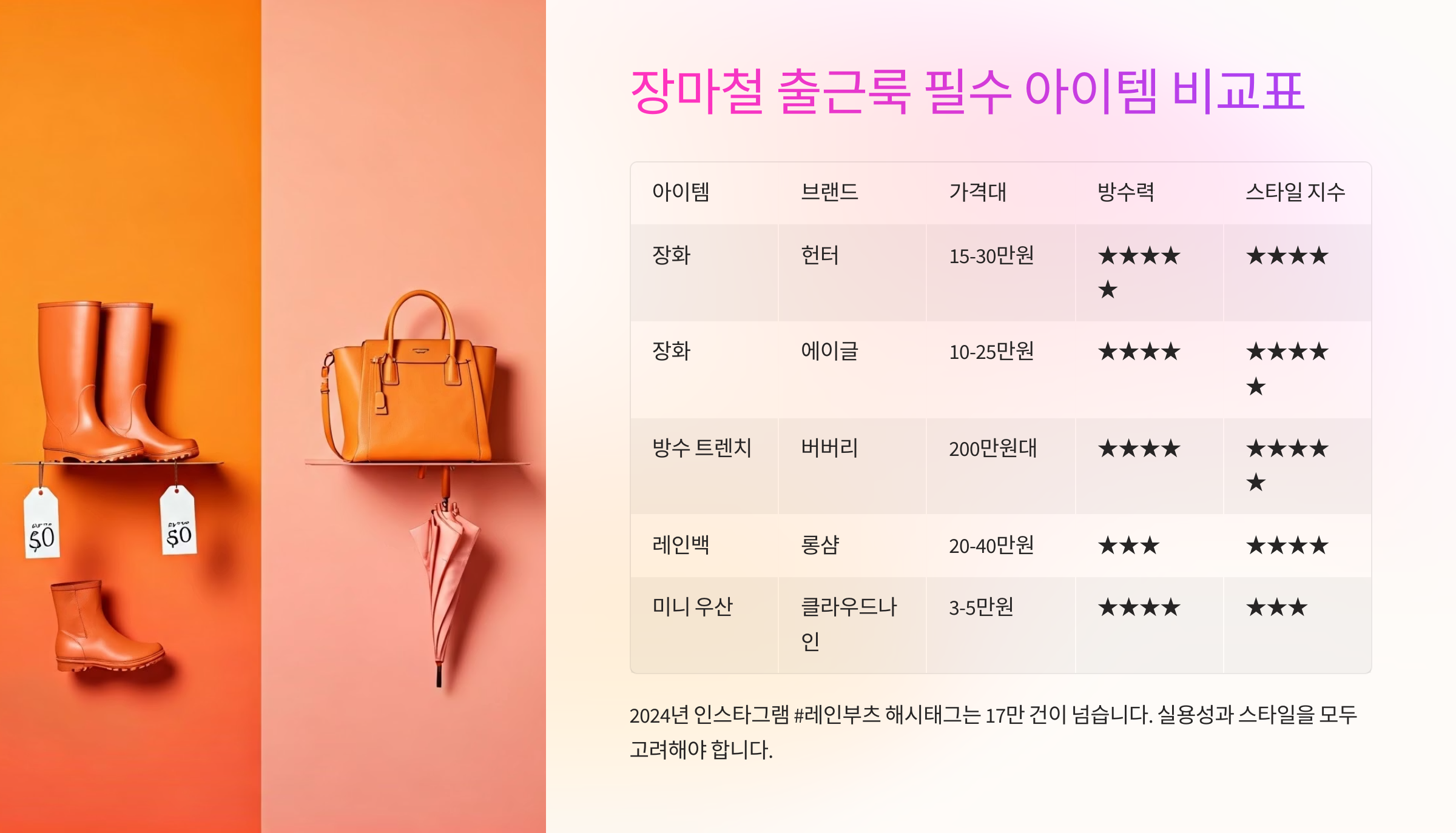 μ₯λ§μ² μ λΉ μ€λ λ μ΄ κ³μλμ΄μ μΆκ·Όλ£© κ³ λ―Όμ΄ λ§μμ§μ£ . λΉλ₯Ό νΌνλ©΄μλ μ€νμΌμ ν¬κΈ°νκ³ μΆμ§ μλ€λ©΄? λ°λ‘ μ₯νκ° μ λ΅μ΄μμ!