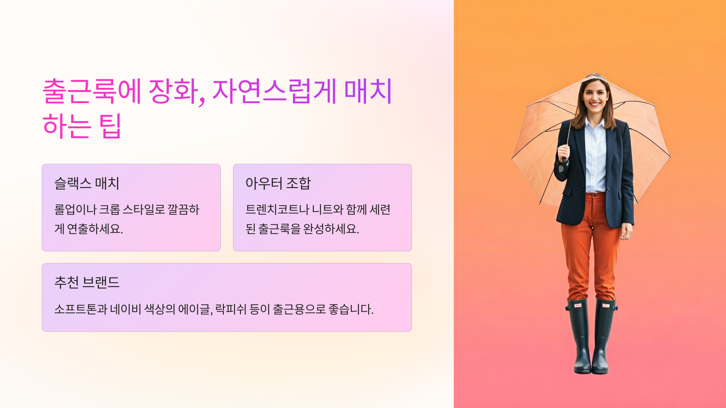 λΉ μ€λ λ μ€νμΌμ ν¬κΈ°νμ§ μμΌλ €λ©΄, μ₯νμ λ§λ μ· μ‘°ν©μ μμμΌ ν΄μ. μ‘°ν©λ§ μνλ©΄ μ₯νκ° λ£©μ ν¬μΈνΈκ° λκ³ , μ€νλ € κΎΈμκΎΈ λλλ λΌ μ μμ΄μ.